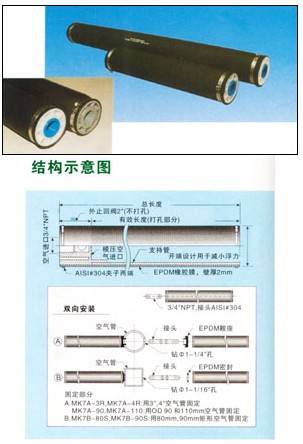 膜片——該橡膠膜片用高級EPDM彈性橡膠制成,其中含有一種抗紫外線老化劑。主種材料能夠耐受侵蝕性化學品的侵做習題,并且抗風雨、抗老化,Hyotube系列曝氣管的膜片具有100%的回彈記憶,其使用壽命長達10年之久。膜片也可選用SantopreneTM聚按酯膜片。