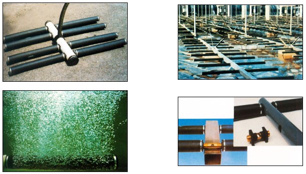 支撐管——7-500F的支撐管采用玻璃纖維增強的聚丙烯整根注塑而成,7-750F和7-1000F的支撐管材為ABS,可運行于酸性環境中。進氣孔上面的膜片不打孔,當停止通氣時,不打孔區膜片的彈性地任何變化,可以緊緊覆蓋在支撐管上面。 HyotubTM-7系列管式曝氣器的所有材料都能長期運行于高達100℃的操作溫度,并且適合在深水池中進行充氣操作。