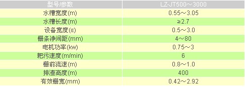 LZ-JT 型階梯式格柵除污機是我公司最新開發的產品之一。主要由機架、驅動機構、傳動機構、固定柵條、往復移動柵條、電氣控制等部分組成。 在結構上一改以往移動齒耙只能作單向直線運動的機械格柵模式,實現通過曲柄邊桿機構而上下往復移動齒耙,將污物逐階推至污物卸料口,而自動卸渣。