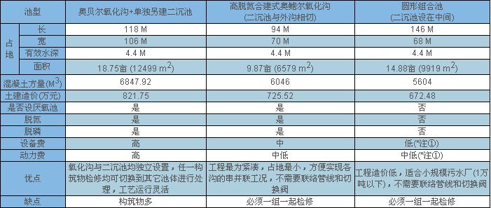 從以上三種氧化溝的對比可以看出,如果都以有效水深4.4m,不考慮脫氮除磷的話,作如下比較分析: