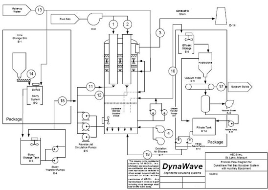 動力波吸收劑可多種選擇,業主可根據實際需要來決定。動力波(DynaWave)逆噴塔的設計能夠處理燒結廠最終選擇的吸收劑, 如石灰,石灰石,燒堿,廢堿液,氨水,鋼渣等不同類型的吸收劑,例如,當采用石灰乳或石灰石時, 逆噴塔必須能夠處理含20%漿料的循環液并保證汽液相的充分接觸而沒有系統堵塞問題。