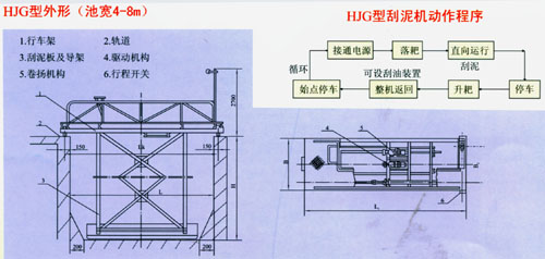 HJG型桁架式刮泥機適用于矩形平流沉淀池,本公司可生產4-25m跨距的刮泥機,具體池形,格數可根據用戶需求,本機整個動作可自動化控制,供電方式有三種:電纜卷筒,滑導線,懸掛鋼絲繩,用戶可任意選用,刮泥機跨距4-8m時驅動采用集中驅動;10-25m時采用兩端同步驅動,我公司生產的桁架式刮泥機也可根據用戶要求,增設撇油、渣裝置,其動作與刮泥動作連動。