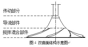 其葉輪結構由導流體、攪拌部件及傳動部分等組成(如圖2)。