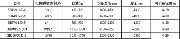 SBJ型深水曝氣攪拌兩用機具有一機兩用的功能,即高速曝氣低速攪拌,可作為各種污水處理工藝中的曝氣攪拌裝置,尤其適用于深池(最大水深20米)曝氣和要求氧氣轉移速率高的場合。