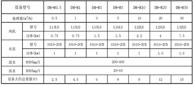 說明:DM-M (0.5~5)設備不設初沉池,污水直接進入接觸氧化池. 接觸氧化池為二級,二沉池的污泥自流至污泥池,污泥池采用厭氧消化.