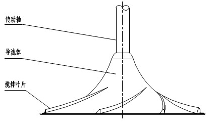 其葉輪結構由到流體、攪拌葉片及傳動軸組成。