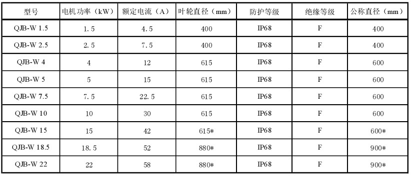 - 電機:50Hz鼠籠式3相潛水異步電動機,F級絕緣,防護等級IP68。電機由周圍介質冷卻;
