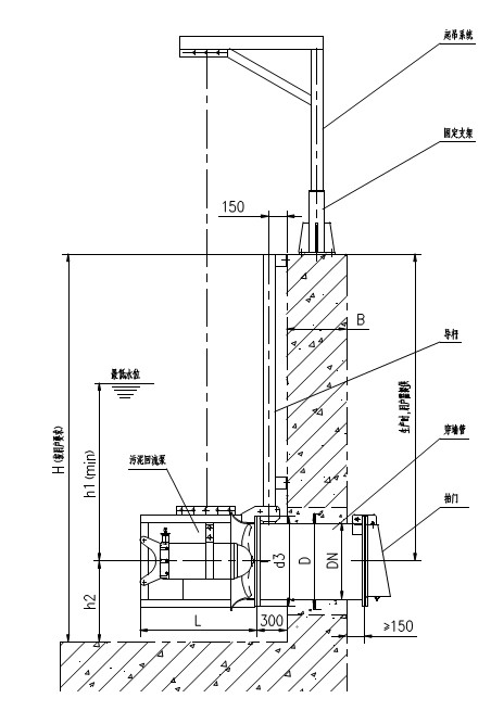 3.本設備除穿墻管需要預埋件外,導桿、起吊架均用鋼膨脹螺栓與池體連接,不需要預埋件。