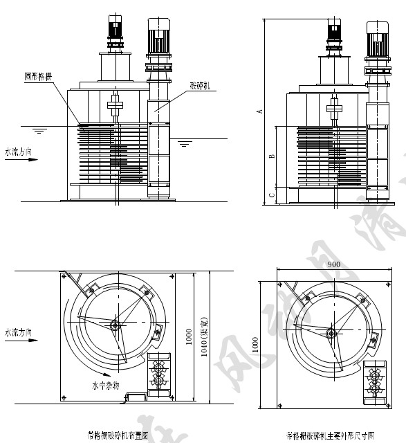 2.??? 圓形格柵中機架、格柵、齒耙、軸等用戶如需不銹鋼材質,應另行注明;
