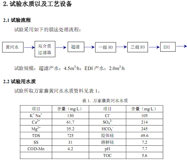 滲透和 EDI 設備性能長期運行后可能的衰減等因素,綜合認為該工藝是安全、可靠的。