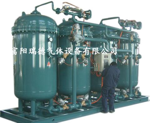 RDN系列制氮機是根據變壓吸附原理,采用高品質的碳分子篩作為吸附劑,在一定的力學效應,氧在碳分子篩微孔中擴散速率遠大于氮,在吸附未達到平衡時,氮在氣相中被富集起來,形成成品氮氣。然后減壓至常壓,吸附劑脫附所吸附的氧氣等其它雜質,實現再生。一般在系統中設置兩個吸附塔,一塔吸附產氮,另一塔脫附再生,通過PLC程序自動控制,使兩塔交替循環工作,以實現連續生產高品質氮氣之目的。壓力下,經過凈化干燥的壓縮空氣,在吸附器中進行加壓吸附、減壓脫附。