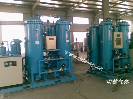 RDN系列制氮機是根據變壓吸附原理,采用高品質的碳分子篩作為吸附劑,在一定的力學效應,氧在碳分子篩微孔中擴散速率遠大于氮,在吸附未達到平衡時,氮在氣相中被富集起來,形成成品氮氣。然后減壓至常壓,吸附劑脫附所吸附的氧氣等其它雜質,實現再生。一般在系統中設置兩個吸附塔,一塔吸附產氮,另一塔脫附再生,通過PLC程序自動控制,使兩塔交替循環工作,以實現連續生產高品質氮氣之目的。壓力下,經過凈化干燥的壓縮空氣,在吸附器中進行加壓吸附、減壓脫附。