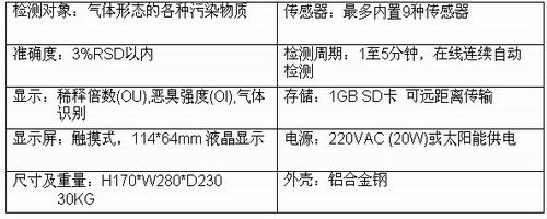 可測量稀釋倍數(OU),惡臭強度(OI),惡臭源的氣體成分及含量;