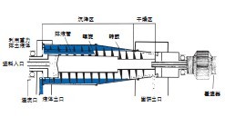 臥式螺旋卸料沉降離心機是采用固-液密度差,并依靠離心力場使之擴大幾千倍,固相在離心力的作用下沉降、從而實現固液分離。