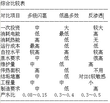 通過上述比較并結合實際工程的調研,鑒于熱法中的低溫多效在多級閃蒸的基礎上有了較多改進,在此僅將熱法中的低溫多效工藝和膜法進行綜合比較。