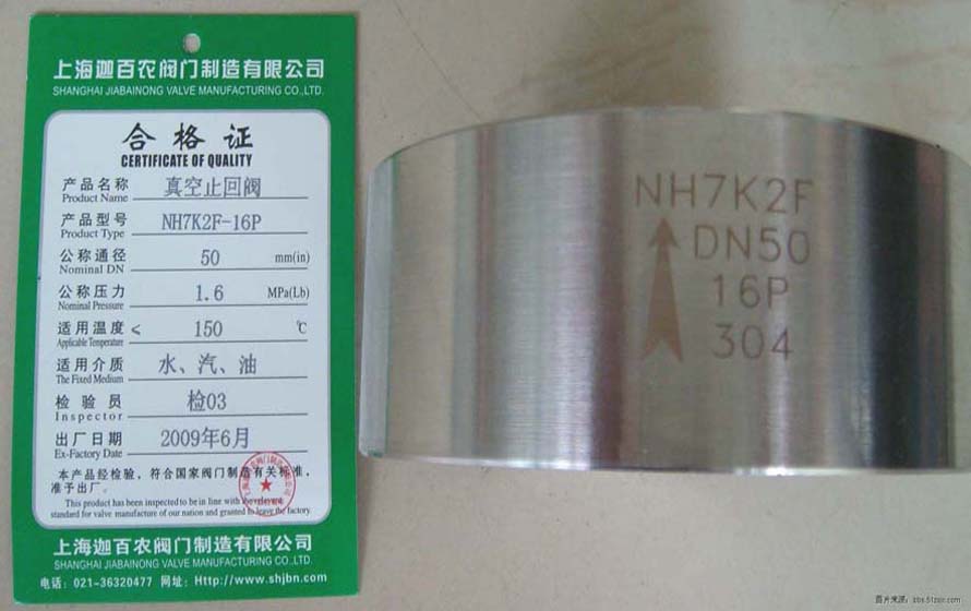 型號,NH7K2F-16P 又名真空阻液閥、真空逆止閥、真空單向閥等,安裝于真空泵抽氣口以防止停泵或意外停電時真空泵工作液及空氣返流至真空系統,從而造成真空系統被工作液污染及真空度被破壞。