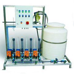 加藥量參考指標:700升/小時,壓力1巴(根據加藥系統的復雜程度,可增設攪拌機或管式混合器等常規儀表設備,也可采用PLC電控系統)