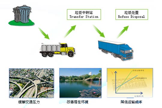 中轉站通過先進的接收壓縮裝置,使散裝垃圾壓縮裝箱后清潔高效的外運,改變了垃圾露天堆放、轉運等嚴重污染環境的原始狀況,避免了垃圾運輸過程中的遺灑。同時考慮到對周邊環境和內部工作條件的影響,中轉站對粉塵、臭氣、污水、等采取了積極的防護措施。另外可針對垃圾特點和垃圾處置需要,增設垃圾預處理環節,擴展中轉站的功能并提高運作效率。