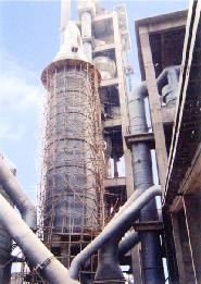 由于干法水泥窯尾煙氣的濕含量低,粉塵的比電阻高,容易產生反電暈,所以在窯尾設置增濕塔,可以顯著改善粉塵的比電阻,保證窯尾電收塵器達到最佳的收塵效果。另外,采用增濕塔可使窯尾煙氣溫度降至120-150℃以下,此時用戶也可選擇使用窯尾袋收塵器進行收塵。