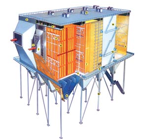 電除塵器的除塵原理是讓塵粒在高壓靜電場中荷電,荷電塵粒在電場力的作用下,向極板極線移動,并沉積在極板極線上,然后通過振打落入灰斗,達到煙氣除塵的目的。