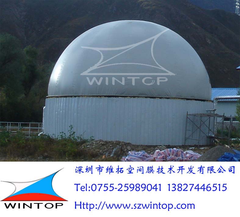 沼氣貯存柜(罐)的結構簡單無須過多維護,膜材均采用耐腐蝕的環保專用復合材料,主要由高強抗拉纖維、氣 密性防腐涂層、表面涂層(PVDF)組成,具有防腐、抗老化、抗微生物及紫外線等功能,并且防火級別達到歐洲標準。