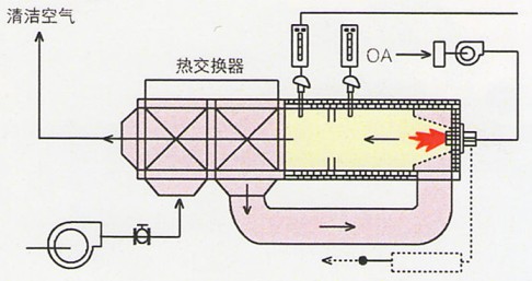 以800攝氏度以上的高溫,對VOC(揮發性有機化合物)處理效率99%以上的狀態進行氧化分解。因為把升溫后的熱量以最大95%的效率進行蓄熱,所以基本上不要燃料。V0C濃度高的場合,可利用與廢熱蒸汽鍋爐組合后的熱源。