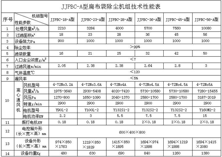 本機組根據過濾面積不同分18、23、28、36、45、56六種規格。