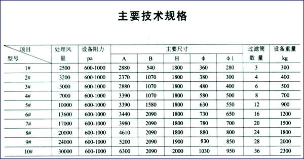 本產品共分十種技術規格,處理風量為2500-3000m3/h。本廠可按用戶要求供應非標準產品。