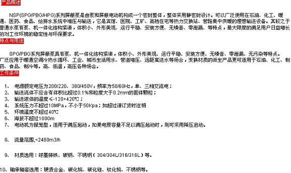NSP系列屏蔽泵是由泵及屏蔽電動機構成的一個密封整體,整體采用靜密封設計。可廣泛應用于石油、化工、暖通、醫藥、食品、給排水系統中增壓與輸送,它是賓館、醫院、工礦等熱力交換站、管路集中供暖的理想輸送設備。較之于普通水泵有結構緊湊、運行平穩、安裝方便等特點。