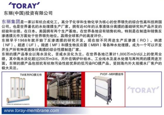 東麗公司獲得澳大利亞某大型生活污水回用系統的反滲透膜元件訂單