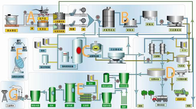A 生產、生活系統部分。產出的工業廢水、生活污水可據情分別或混合處理