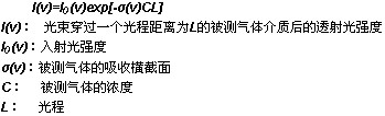 LasIRTM系統的定量分析是以Beer-Lambert定律為基礎,Beer-Lambert定律指出了光吸收與光穿過被檢測的物質之間的關系,當一束頻率為V的光束穿過吸收物質后,在其穿過的光徑上的光強變化為: