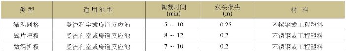 基于快速高效的原則,反應工藝采用微渦網格絮凝反應技術。 該技術通過科學地布設多層網格,使水流過網格時產生強烈的慣性效應和對礬花的揉動作用,控制礬花合理的有效碰撞, 迅速形成密實且易沉淀的礬花。在反應全程分段布設網格,使礬花顆粒由小到大,由松散到密實,大大縮短了反應時間, 一般5~10min即可較好完成絮凝。為下一步的沉淀分離做好準備。