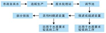 造紙綜合排放廢水回用前與回用后系統工藝流程示意圖如下: