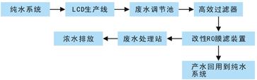 LCD制程清洗廢水回用前與回用后系統工藝流程示意圖如下: