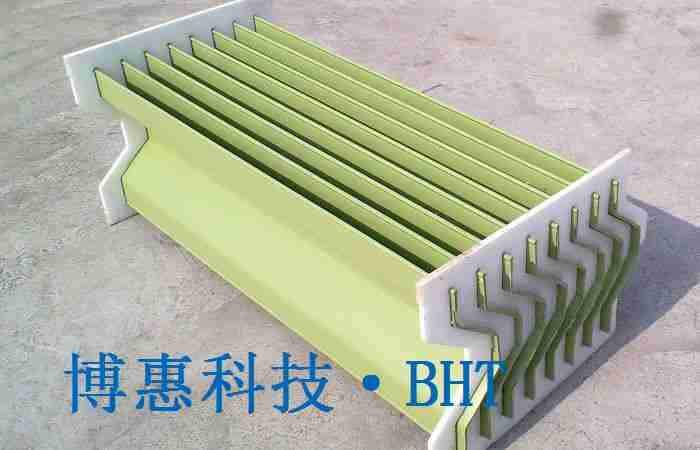 武漢博惠節能環保工程有限公司生產的除霧器有4種板片結構形式,折線型2通道除霧器組件是4種板片結構中結構最簡單的一種,易于沖洗、除去出顆粒的一級除霧器常常采用此結構,在結垢嚴重的場合漸漸被流線型2通道不帶鉤除霧器組件所取代。
