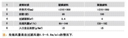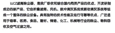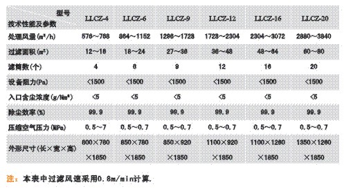 LLCZ型系列濾筒式除塵器技術性能參數表