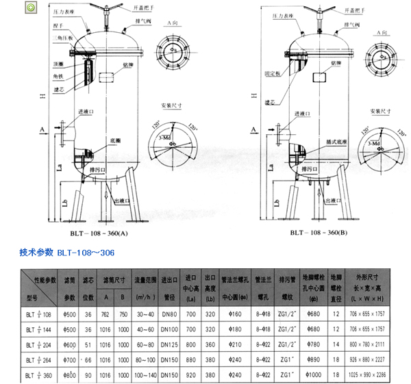 3、通入液體時,將進,出口閥門關閉后,打開排氣閥,再開排污閥,將筒內液體放空,筒內液渣沖洗干凈,再裝入新濾芯。