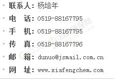來源:常州市霞峰化學材料公司 閱讀:1332 更新時間:2008-08-18 10:23主營產品:緩蝕阻垢劑系列、殺菌劑系列、清洗劑系列、苯扎氯銨、苯扎溴銨、1,3-二氯-5,5’-二甲基海因、1,3-二溴-5,5’-二甲基海因、1-氯-3-溴-5,5’-二甲基海因、二羥甲基二甲基海因、2,2’-二溴-3-氮川丙酰胺、敏樂啶、6-芐氨基嘌呤、酚妥拉明、腺嘌呤、戊二醛</td></tr><tr><td colspan=‘4‘ class=‘font14‘>[所需產品]:乙醇、丙酮、氯氣、溴氣、甲醛、氰醋酸甲酯、過苯甲酸、六氫吡啶、芐胺、乙二胺、POCl*3、氯乙腈、氯化芐、十二叔胺、溴代十二烷、N,N’-二甲基芐胺