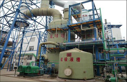 該項目采用我公司具有自主知識產權的新型氨法脫硫技術,吸收塔為“湍流逆噴旋液塔”,系統處理煙氣量180000Nm³/h,脫硫效率≧95%,氧化率≧99.95%,尾氣排放溫度<60℃,尾氣SO2平均排放濃度≤50mg/Nm3,尾氣逸氨量遠低于國家標準限值,每年消減SO21060噸,年產硫銨2400t。本工程于2008年12月開工建設,于2009年9月投入運行。