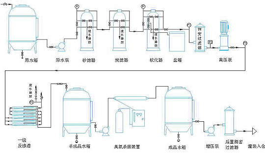 一級反滲透常用工藝流程如下: