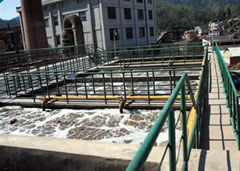 云南銀發環保集團股份有限公司于2003年8月承接特安吶制藥廠污水處理站改造工程項目,設計水量為400m3/d,處理后達到GB8978-1996《污水綜合排放標準》的一級標準。生產廢水流入調節池均質均量后進入水解酸化池,經水解酸化后進入接觸氧化池凈化后的污水加藥混凝沉淀后進入斜管沉淀池,沉淀池出水經加壓泵進入濾罐后達標排放,濾罐反沖水進入調節池。目前此工程運行正常。