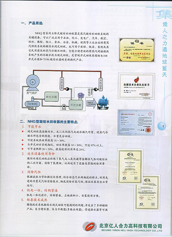 NHQ型系列立臥式凝結水回收器是蒸汽凝結水回收系統的關鍵設備,可以廣泛應用于石油、化工、發電廠、汽車、航空、紡織、橡膠、輕工、食品、冶金、機械、制藥等工業企業的有蒸汽供熱系統的凝結水閉式回收。