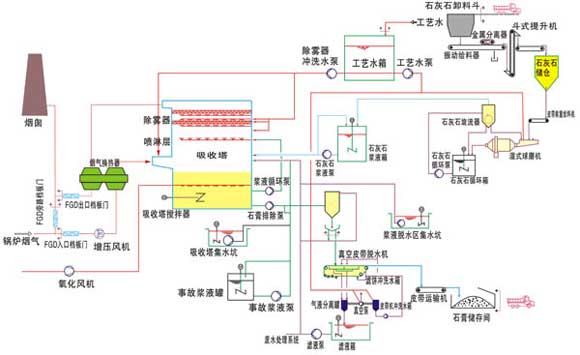 液柱塔濕法煙氣脫硫技術工藝流程圖