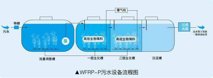 WFRP-P污水設備用于化糞池之后,專門用于對污水排放有更高要求的場所,它運用生物接觸氧化技術對污水進行高效生物處理。