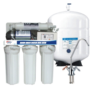 機器上配有特制的雙出水龍頭,實現兩種水質的選擇,打開生飲龍頭源水經五級過濾,可直接飲用,除飲用外的另一部分用水專門采用三道濾芯過濾,沒有濃縮水,節水節能。這樣可以減少反滲透膜的用量,從而可使反滲透膜的使用壽命提高1-2倍。
