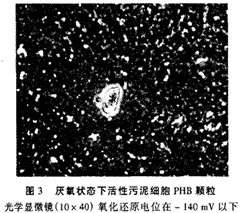 活性污泥聚磷菌細胞中的PHB和Poly-p顆粒在生物除磷中發揮了重要的作用,在生物除磷工藝中,對活性污泥樣品中的PHB和Poly-y顆粒進行染色,發現在厭氧區(氧化還原電位在-140mV以下)污泥細胞內PHB顆粒迅速、大量增加,聚磷酸鹽顆粒迅速減少;在好氧區(氧化還原電位在100mV以上)污泥細胞內PHB顆粒迅速減少,聚磷酸鹽顆粒迅速增加。因此可以通過對活性污泥直接染色,觀測活性污泥細胞的PHB和聚磷顆粒的變化,從而判斷生物除磷效果。