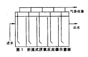 折流式厭氧反應器(Anaerobic Baffled Reactor)是Bachman和McCarty等人[2]于1982年前后提出的一種新型高效厭氧反應器,其構造如圖1。