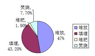 根據2007年中國統計年鑒,截止至2006年底,全國661個設市城市生活垃圾清運量1.48億噸,有各類生活垃圾場419座,處理能力為25.8萬噸/日,集中處理量約8千萬噸,集中處理率52.2%;其中城市生活垃圾填埋場324座,處理能力20.7萬噸/日,填埋處理量約6400萬噸;城市生活垃圾堆肥廠20座,處理能力0.95萬噸/日,處理量288萬噸;城市生活垃圾焚燒廠69座,處理能力4萬噸/日,處理量1138噸;按處理量統計,填埋、堆肥和焚燒處理比例分別占14.5%、12.9%和5.1%,按清運量統計分析填埋、堆肥和焚燒處理比例分別占43.2%、1.9%和7.7%(上述數據還存在一定誤差,見圖1)。