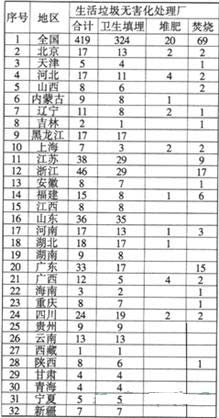 與2005年相比,2006年生活垃圾處理中焚燒處理增長顯著,而堆肥處理進一步萎縮,填埋處理略有增長,根據統計,現有的419座生活垃圾處理設施分布如下表1,其中比較突出的是,生活垃圾焚燒處理以浙江、廣東和江蘇發展較快,排在全國前列。